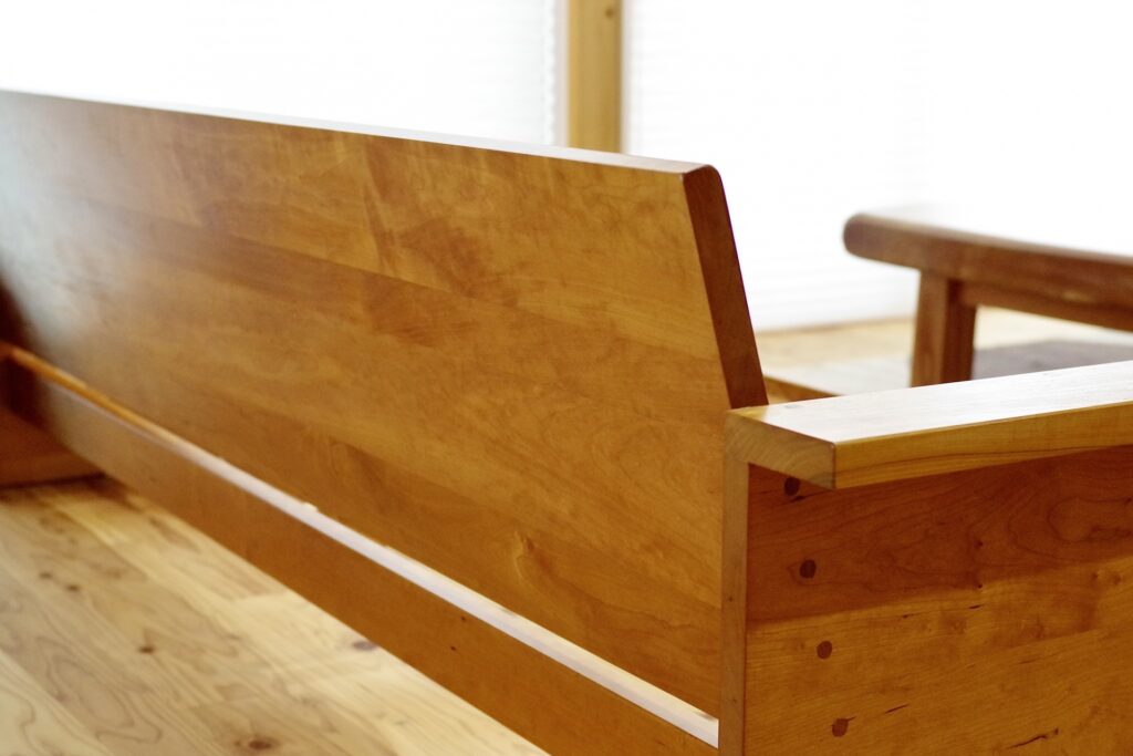 一方、こちらはシナ本来の色合いを活かす「ウレタン艶消し塗装」を施した事例です。ナチュラルなインテリアに馴染むように、艶消し塗装でぬくもりを引き立て、和らぎを感じられるデザインに仕上げています。